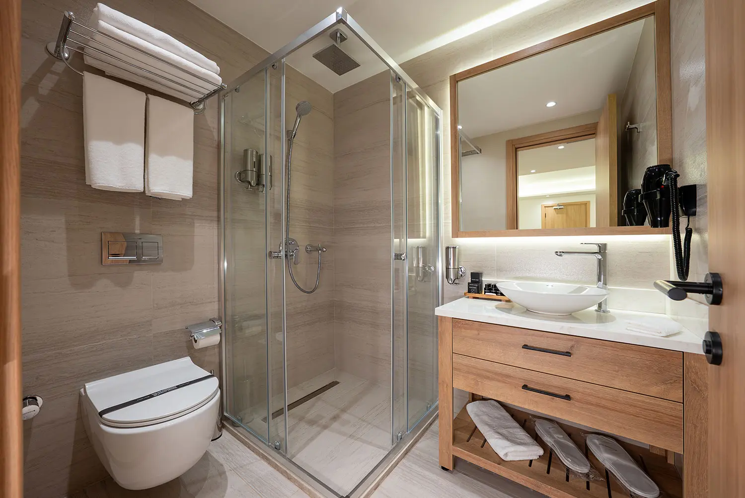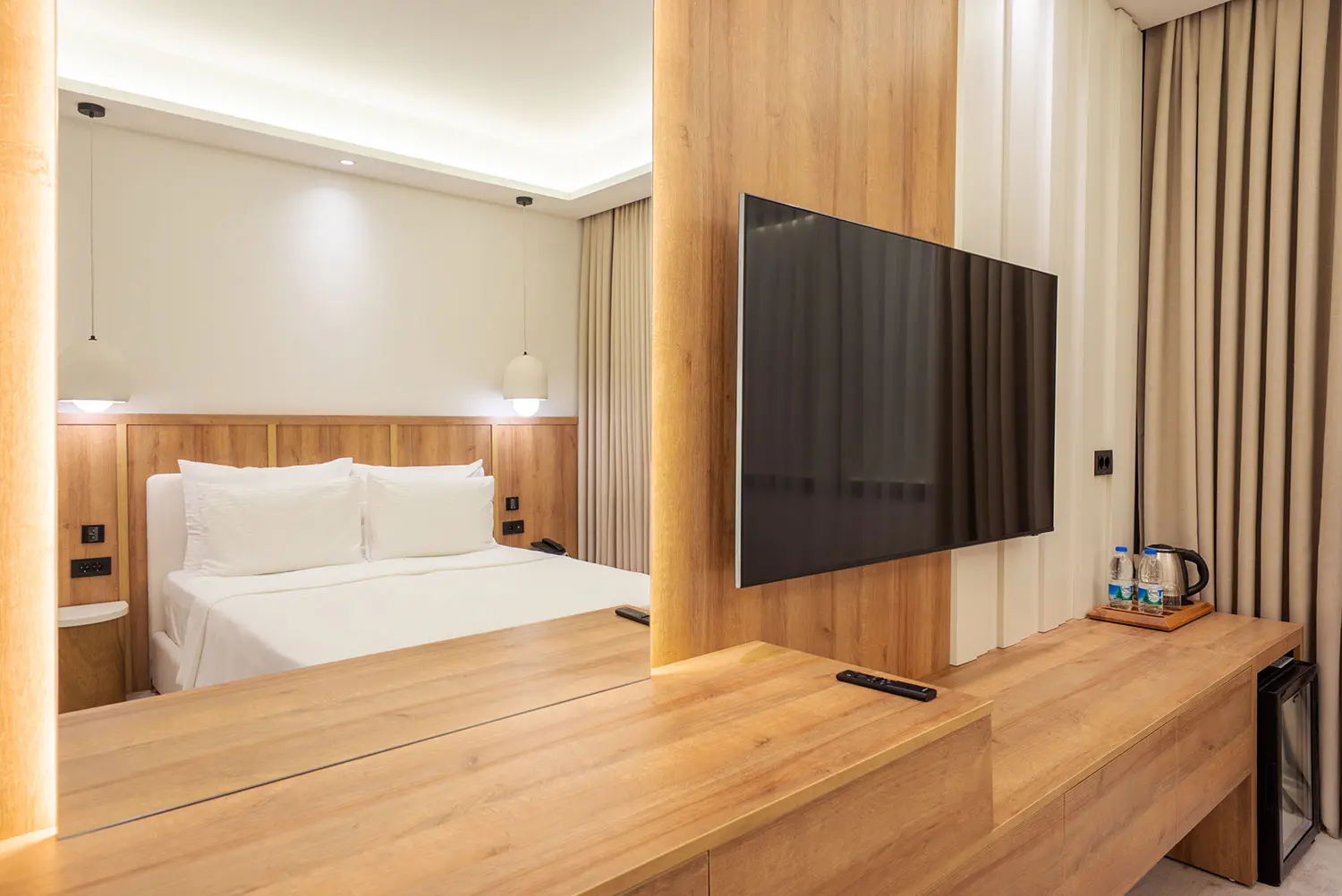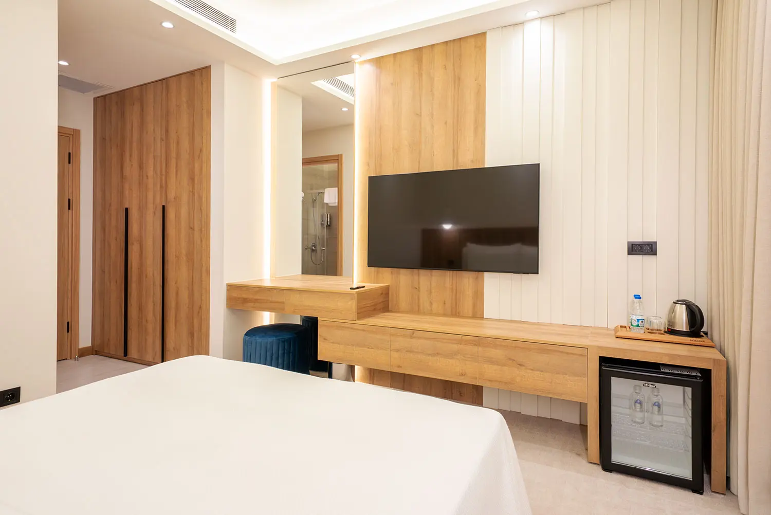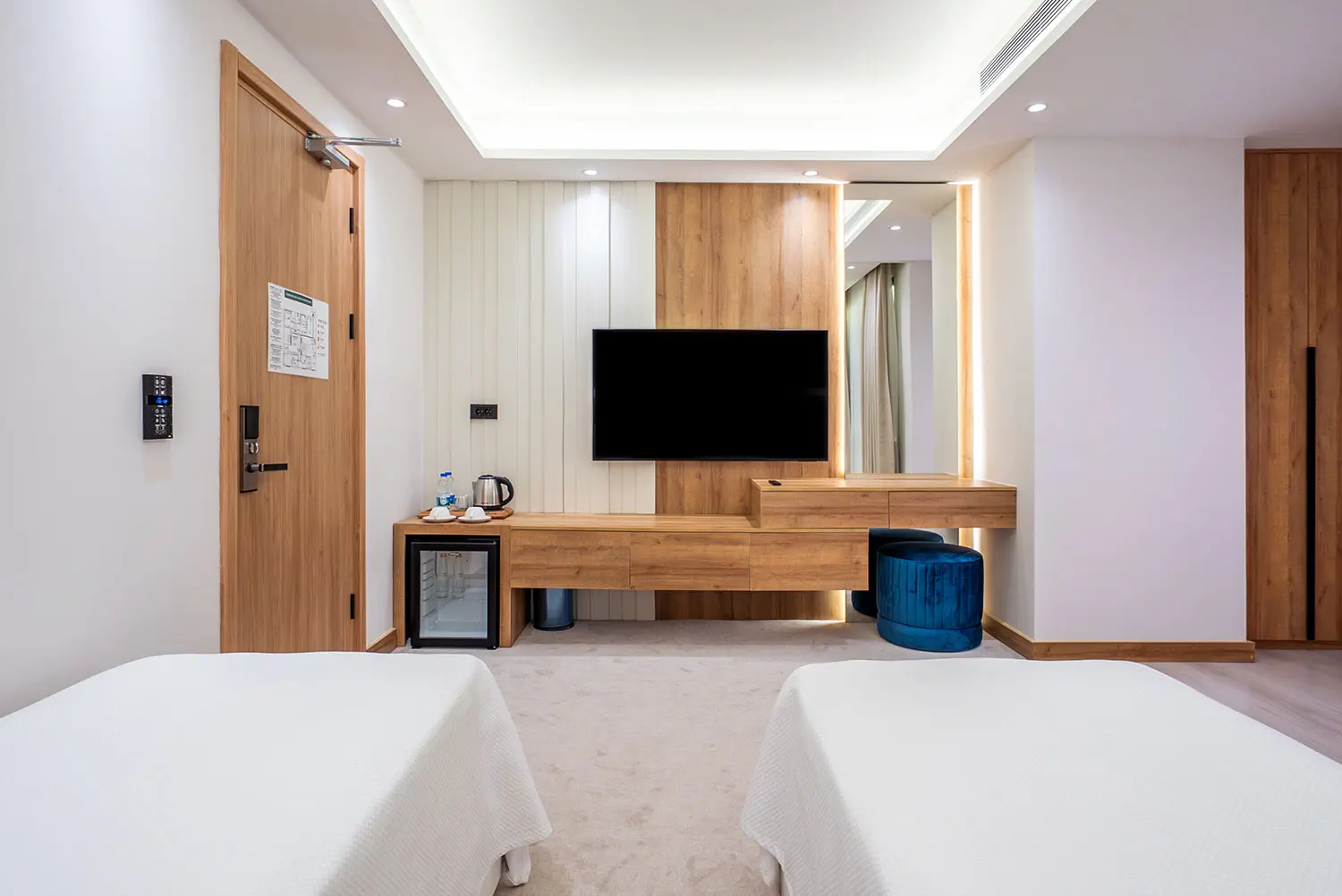 Odamız 30 metrekaredir. Gayet geniş ve ferah. İçerisinde gayet şık dizayn edilmiş bir banyo, uydu TV, minibar, safe box bulunmaktadır.